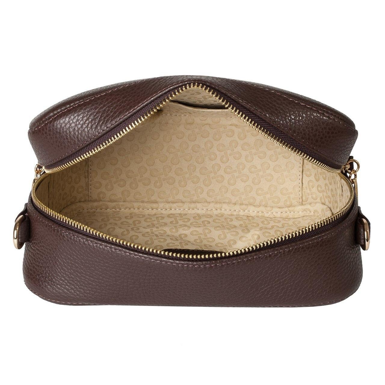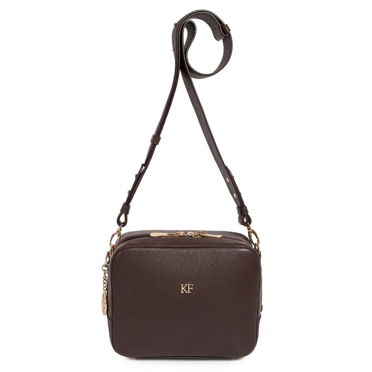 Brown genuine leather woman shoulder bag from ukrainian designer Katerina Fox. Fashionable and elegant modern bag KF for bright girls and women. This bag is able to attract attention and highlight your exquisite taste. The internal space of a bag is equipped with one spacious compartment and one zipper pocket. The bag is closed with a zipper. The length of the strap is adjustable. The kit also includes a storage bag.