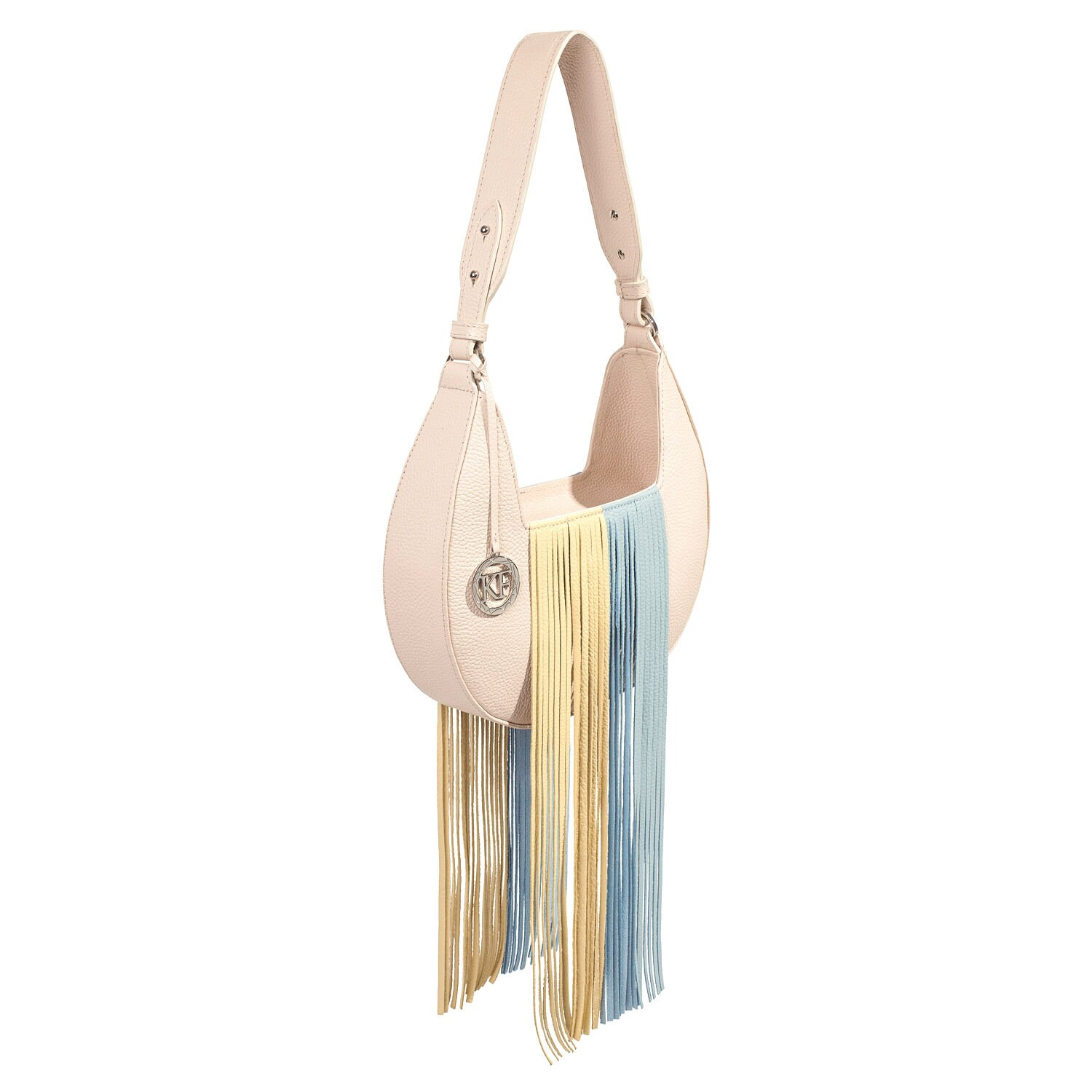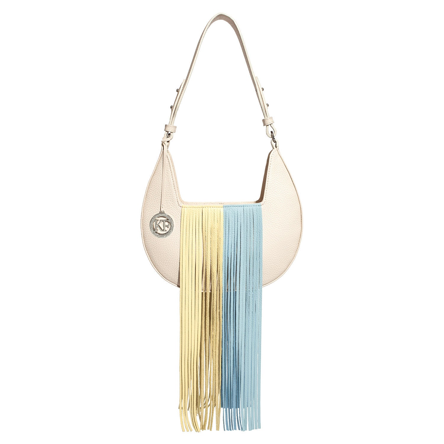 Light beige genuine leather woman shoulder bag from ukrainian designer Katerina Fox. Fashionable and elegant modern bag KF for bright girls and women. This bag is able to attract attention and highlight your exquisite taste. Inside the bag is one large compartment and two pockets for a small items, close the bag on the zip. The bag is comfortable to wear on the shoulder.